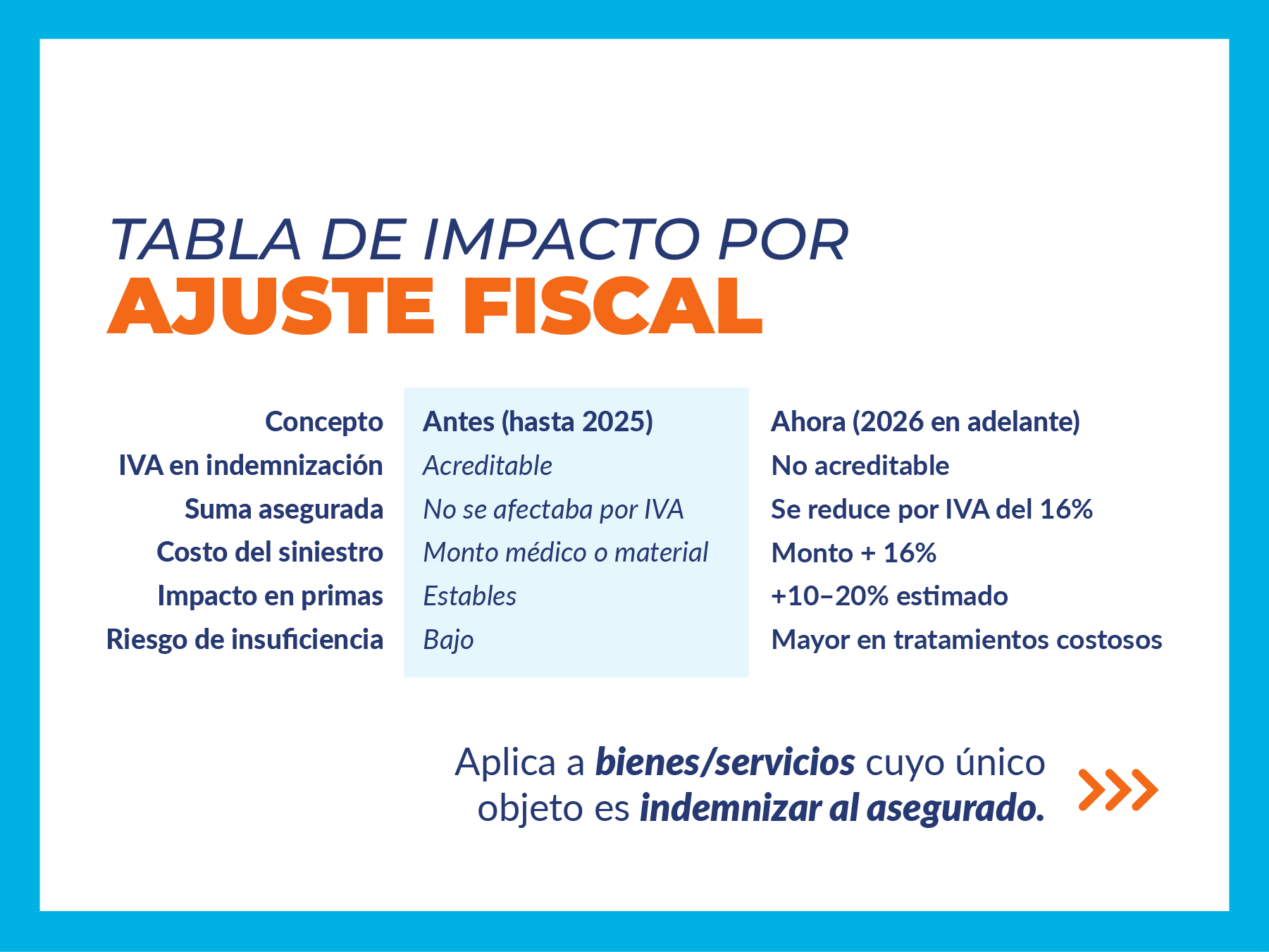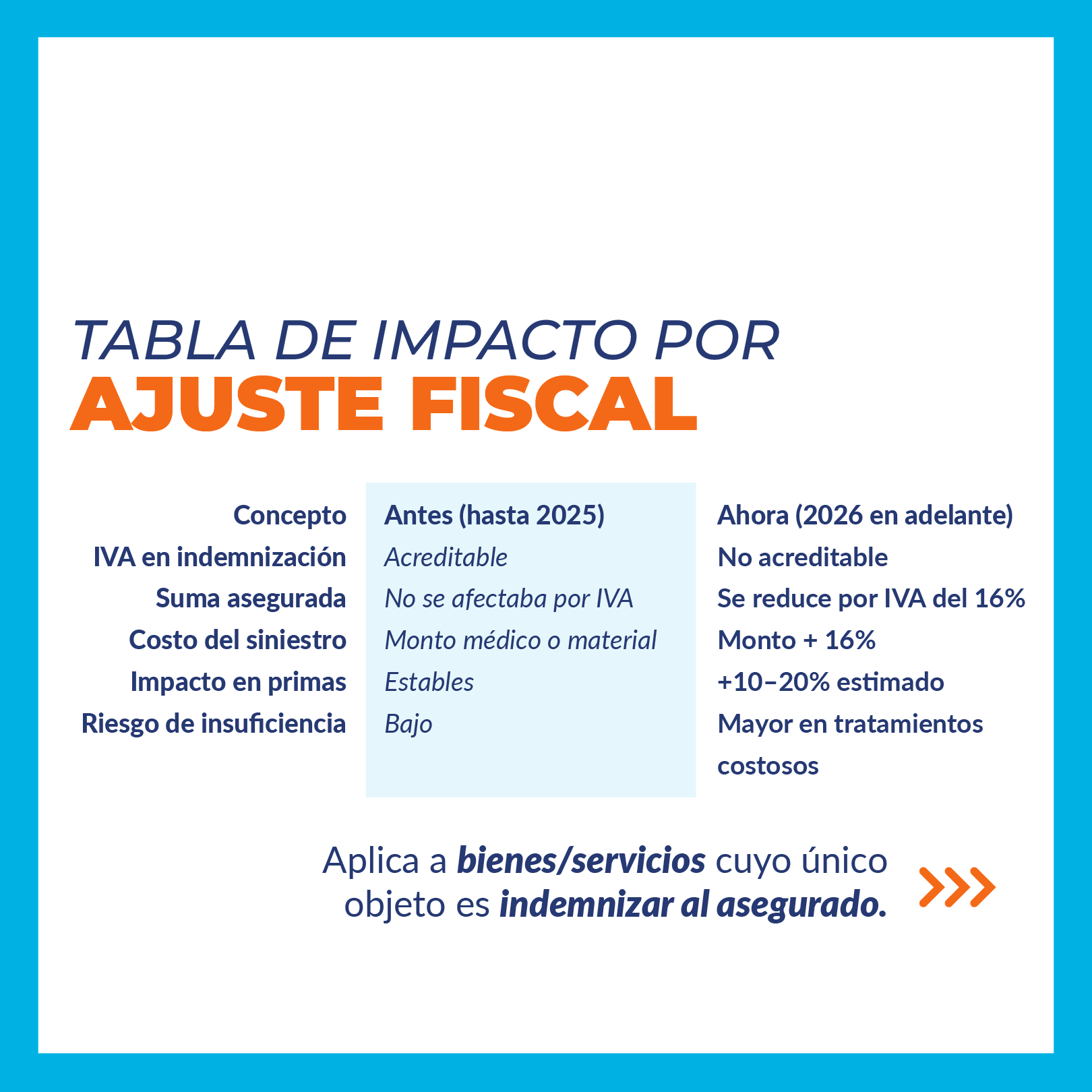 Esto implica que, en siniestros de Gastos Médicos, Autos y Daños, el IVA del 16% ahora sí se considera dentro del monto del siniestro, y por tanto sí reduce la suma asegurada.